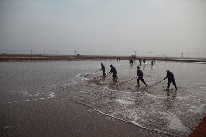 听 是谁 踩着露珠与晨曦追时间看 是那些制盐人 用健壮的脚 日复一日 开垦出丰收的路 而又是 那些用盐粒堆砌的晨曦与黄昏 变成蒸发池熬煮的年轮 盐耙子年复一年 搁浅在黝黑的皱纹里 粗犷的指纹抚平波纹 结成霜白的痂...