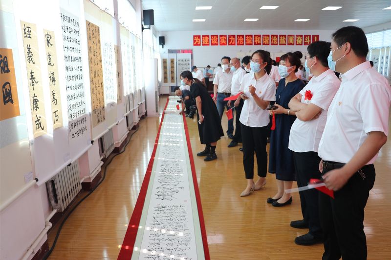 公司领导班子成员,黄骅市文联、黄骅市书法家协会、黄骅市书画院等有关单位领导,黄骅市知名书法家及公司各总支(支部)书记、书画爱好者共100余人参加开幕式并观看展览。