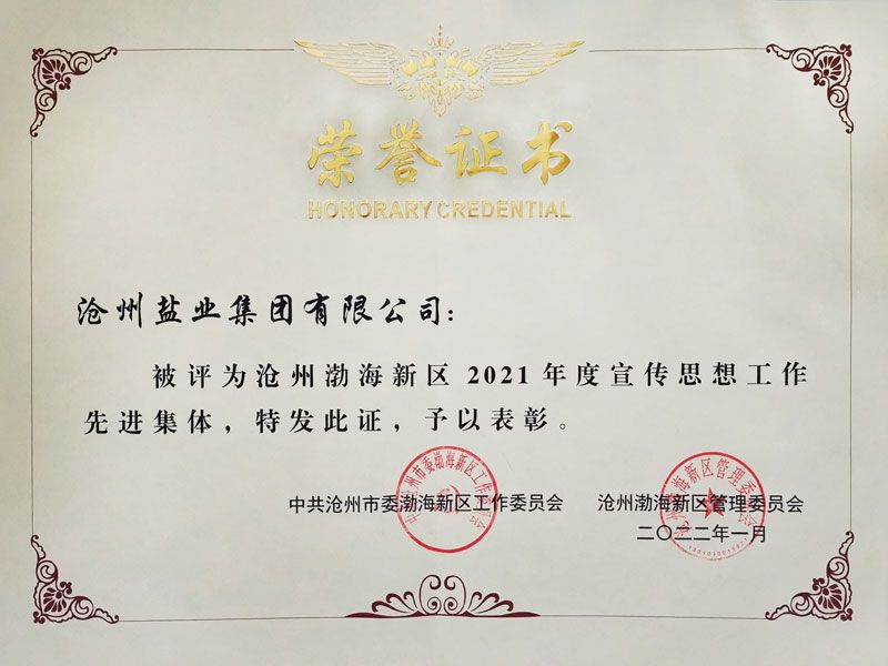 2月17日,在渤海新区宣传工作会议上,我公司荣获“2021年度宣传思想工作先进集体”荣誉称号并受到表彰。