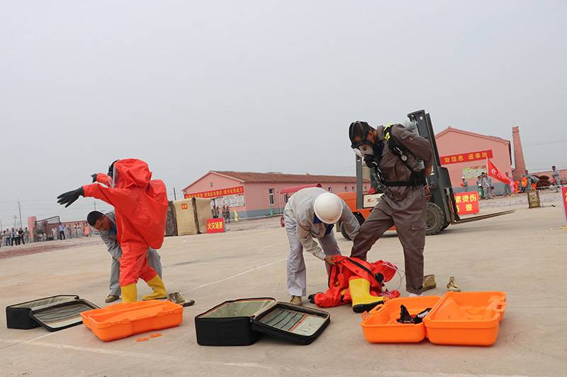 本次参加实战演练的队员40余人。活动模拟了机械伤害、中暑、触电、火灾、溴素烫伤、氯气泄露等6个事故场景。在应急救援指挥部的统一指挥下和各应急救援队员的准确处置下,人员得到了有效疏散,伤员得到了及时救助,事故得到有效控制,全面检验了指挥调度效率和救援队伍的应急实战水平,确保了遇到突发事件能“拉得出、攻得上、打得赢”。演练同时还进行了消防技能、空呼机穿戴、防化服穿戴、空呼机穿戴30米跑等比武活动。