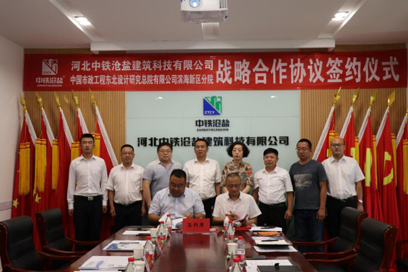 7月9日,河北中铁沧盐建筑科技有限公司与中国市政工程东北设计研究总院有限公司滨海新区分院举行了战略合作签约仪式。集团公司党委书记、董事长刘建军,党委委员、工会主席李金营,受邀出席了签约仪式。