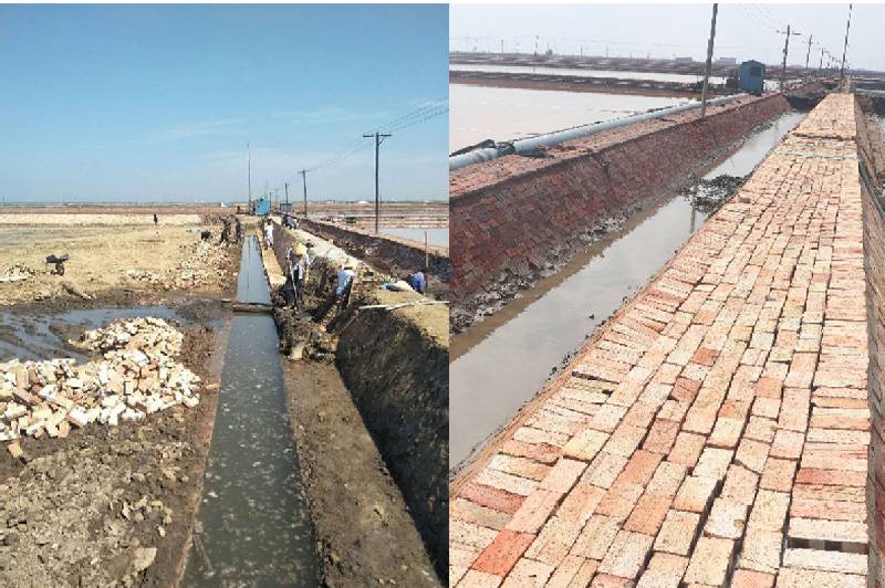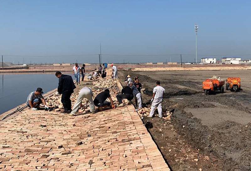 在抓紧进行滩田技改工程的同时,长芦公司还全面启动了滩田文明生产工作,修整沟壕盐道,轧实赶卤池,清除杂草,规划设备区域和车位,并对四、五、六工区每个队1副滩推行了滩田堤埝护毡工程,有效提升了滩容滩貌。截至目前,文明生产战役已近收尾阶段,累计完成护滩埝13650米,滩田护毡14760米,合并赶卤池4629公亩.