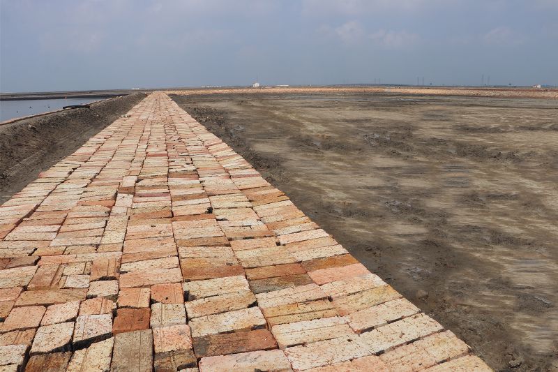 为了确保工程如期完工,长芦公司全体干部职工放弃节假日休息,克服施工期间降雪、大风降温等极寒天气影响,加班加点、全力以赴赶进度,于2021年1月11日,顺利完成了14个技改保卤池共1184公亩的机械成埝,人工护砖工作。在施工期间,因环保要求,红砖进场工作几度停止。工贸公司积极协调供货方,根据每个施工现场工程进度,合理调配用砖;生产部严把工程质量,加大巡查力度,发现问题及时解决;安全部对施工现场设备、人员及时进行检查、培训,确保了施工安全。