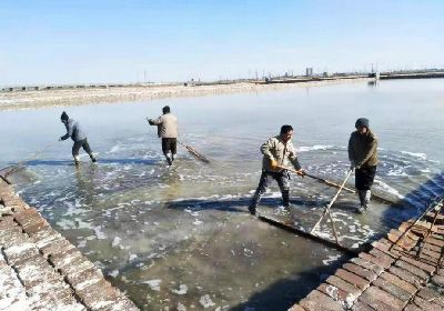 各制盐工区牢牢把握天时,把制卤竞赛和越冬池处理当作首要任务,根据卤水情况加快越冬池处理晾晒速度,从春节至正月初七,长芦公司共处理越冬池1.3万公亩,处理面积达50%以上,为春晒多产盐、产好盐打下了基础。
