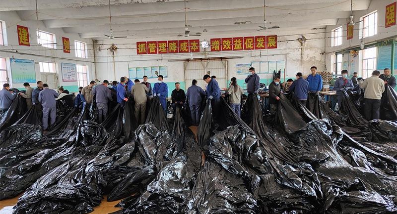 节日期间,工贸公司上下齐心协力,从班子、其他车间职工到工勤岗位全员出动,主动放弃休息,在保证安全生产和完善疫情防控的要求下,加班生产。为了降低职工劳动强度,技术研发部门通过多次改进,设计制造出了塑苫传送装置,大大节约了人力成本,提高了配送效率。