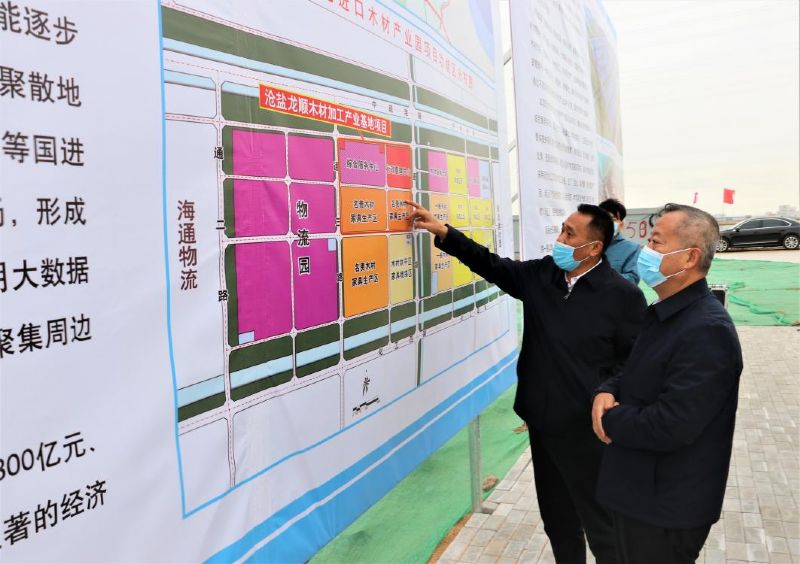 10月27日,沧州渤海新区党工委副书记、管委会主任,黄骅市市委副书记、市长宫建军带队,率领沧州渤海新区黄骅市重点项目观摩团来沧盐龙顺木材加工产业基地项目进行观摩指导。沧州渤海新区黄骅市四套班子相关领导,各功能区、三大集团、各科局、乡镇主要负责人陪同调研。