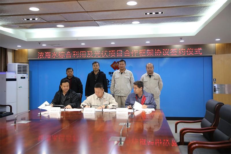 11月30日,在集团公司积极推动下,经过多次协商,长芦黄骅盐业有限公司、旭源公司与国能河北沧东发电有限责任公司顺利签订了浓海水综合利用及光伏项目合作框架协议。