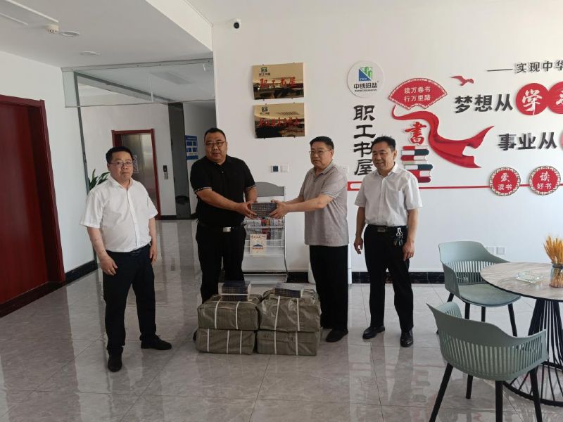 中铁沧盐书屋在市级职工书屋示范点建设工作中表现突出,喜获沧州市总工会赠书殊荣。近日,工会主席李金营带队到中铁沧盐有限公司,亲自将赠书转交至中铁沧盐公司。