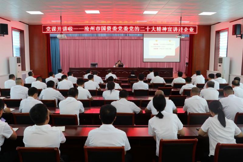 为深入学习贯彻落实党的二十大精神,8月18日,沧州市国资委党委特邀沧州市委“走基层”宣讲团讲师、沧州市委党校党史党建教研室副主任苗玲玲副教授在沧州市国资委党建科科长刘倩的陪同下,来我公司进行党的二十大精神进企业宣讲。集团公司在家领导,基层各单位党总支、党支部书记,机关党群部门的负责同志及部分党员代表60余人参加了宣讲报告会。宣讲报告会由党委副书记王化池主持。