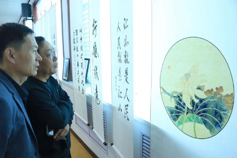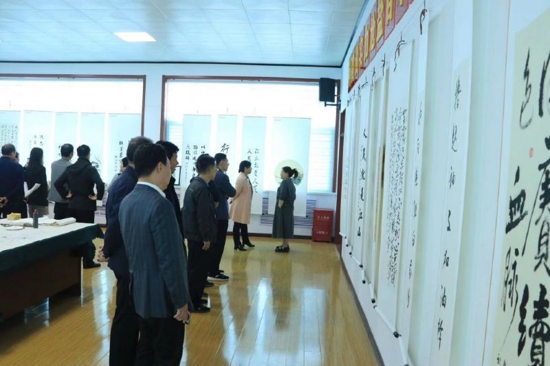 此次书画展以习近平总书记的金句语录和党的二十大报告中的重要论述为主要内容,以传承和弘扬中国传统书画艺术为手段,以笔抒怀,用笔抒情,共计收到在职干部职工、退休干部职工作品40余幅,经过严格筛选,共有28幅作品参加展览。开展当日,吸引了100多名干部职工参观学习,部分书画爱好者还现场挥毫泼墨,与干部职工共同交流创作心得。