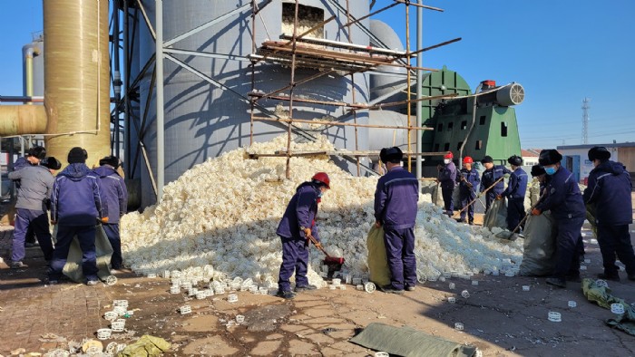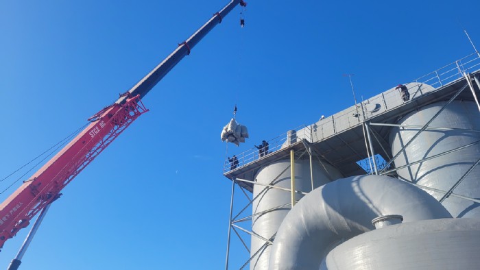 溴素二厂厂区南“吹出塔”始建于2017年,经过多年高强度运行,内部填充物“阶梯环”腐蚀氧化严重,致使溴素生产过程中吸收效果大大降低。为进一步提高溴素吸收率,增强塔内综合反应效果,保障溴素生产质量,溴素二厂全体干部职工于1月4日开始,启动“吹出塔”填充物更换工作。在更换过程中,职工们协同作战,分工合作,仅用三天时间便完成了更换工作,比原计划提前了两天,为2024年溴素稳产高产打下坚实基础。