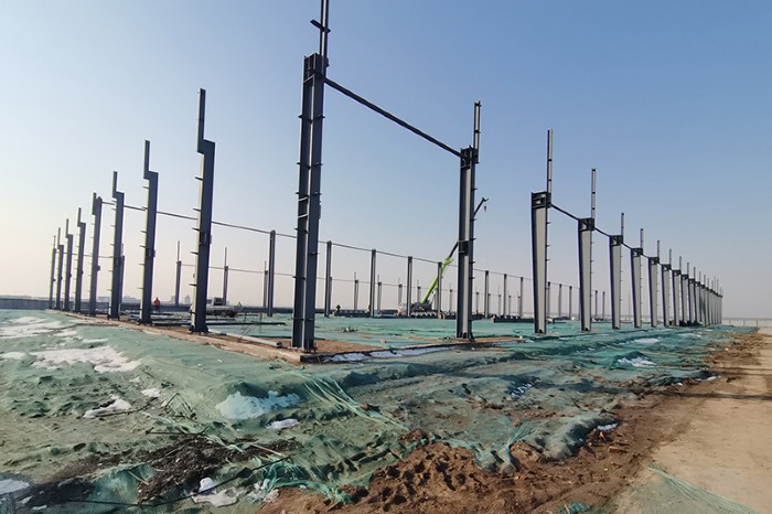 1月6日,沧盐龙顺木材加工基地项目钢结构标准化厂房正式进入安装阶段。