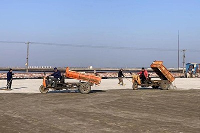 节日期间,班子成员带头坚守岗位值班值守,同时做好所属各单位的工作督查。各制盐单位抓住春节期间气温上升的有利时机广聚卤源多制卤,扎实做好结晶池活碴、边角污染物处理,泼水灭尘等工作,做好越冬结晶池晾晒处理。2月6日至16日,长芦公司共晾晒处理越冬结晶池1.3万公亩,换新卤结晶面积占正在结晶面积的52%以上,提前进入春晒状态的同时为应对下步天气过程做好了充足准备。部分生产单元还根据卤水存量,适时拖泥、晾池、轧实、撒盐种、量卤灌池,做好冬灌工作,增加结晶面积,至2月16日,新增结晶面积547.7公亩。