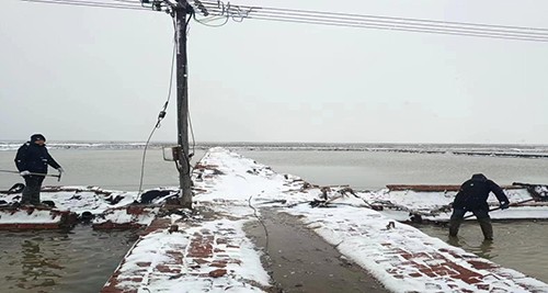 根据天气预报,长芦公司提前做好保卤、加深结晶池、防滑防冻、留岗值班、交通安全等防灾减灾安排。全体生产管理人员、制卤人员坚守岗位,冒着暴风雪寒潮开启循环串壕、融化积雪,彻夜进行结晶池和调节池片淡,尽最大限度减少盐卤损失。
