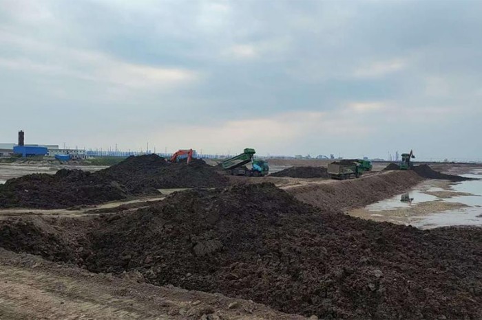 港城区工地整理项目施工现场机械轰鸣,施工车辆来回穿梭。为抢抓施工黄金期,职工们昼夜不间断施工,忍着蚊虫叮咬,开票、收料、检查测量、指挥车辆,严把每个施工环节,确保推进速度与施工质量。