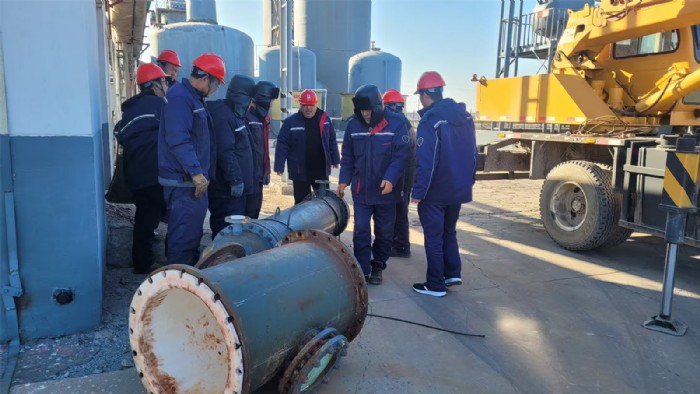 本次设备设施年度检维修作业自2024年12月16日启动,历经20余天。此次维修作业中,冷凝器更换面临诸多挑战。设备拆除难度大、设备体积重、安装空间狭窄,对施工精度要求极高。但溴素二厂技术人员凭借丰富经验和专业技能,精心制定施工方案,严格把控每一个环节,确保了拆除与安装工作安全、有序进行。同时,安全部门全程监督,落实各项安全措施,为检维修作业顺利推进保驾护航。