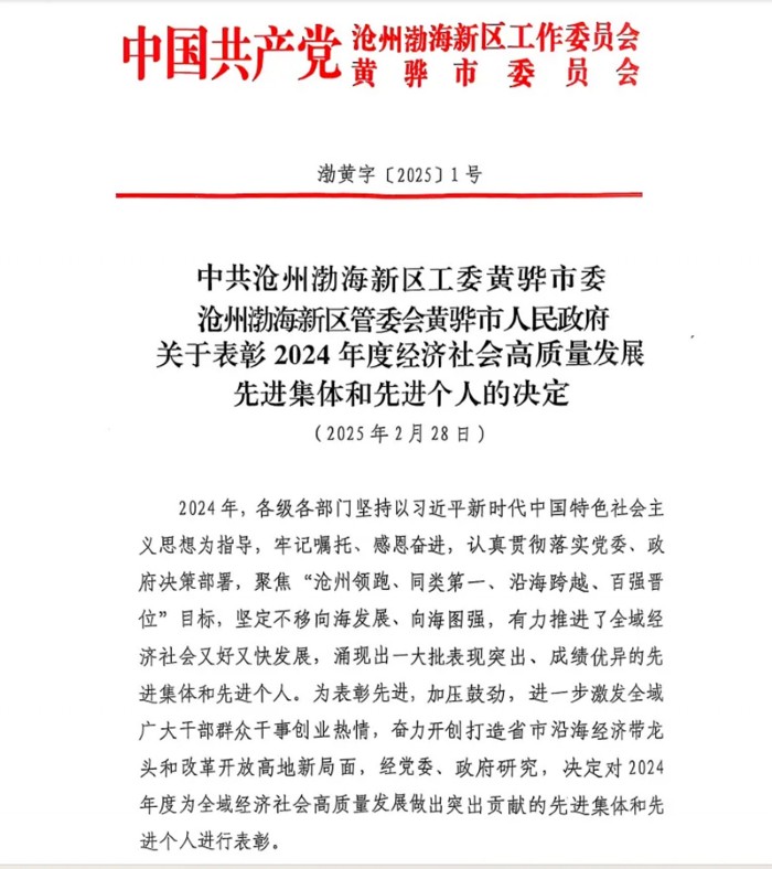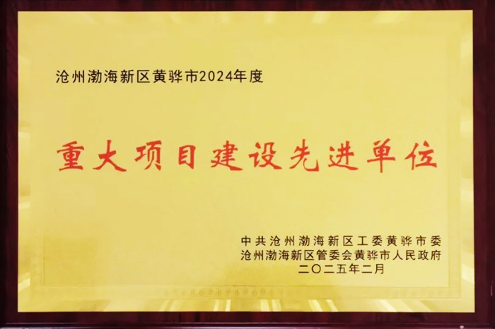 2月28日,在渤海新区黄骅市经济社会高质量发展表彰 暨转作风优环境抓落实大会中,河北中铁沧盐木业发展有限公司荣获全市2024年度重大项目建设先进单位荣誉称号,公司总经理海滨出席本次会议并上台领奖。