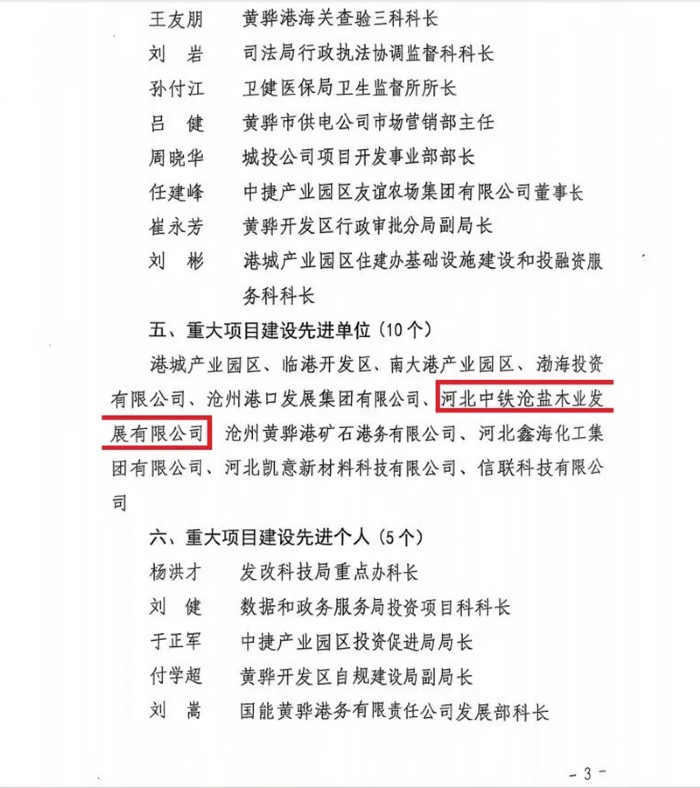 下一步,河北中铁沧盐木业发展有限公司将以此次表彰大会为契机,严格按照市委、市政府及股东要求,进一步完善项目手续,加快项目建设速度,加大招商入园力度,为推动渤海新区黄骅市经济社会高质量发展贡献力量。
