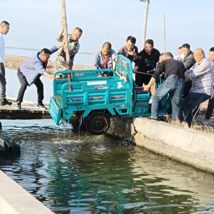 当日早上,长芦公司制卤二工区像往常一样召开日常性班会,布置扬水、制卤、安全隐患排查等工作。7点左右,当会议刚刚结束,参会职工们突然听到不远处传来大声呼救,职工鲁树、王长在马上跑出会议室,顺着呼救声发现不远处的第四扬水站往南的扬水渡槽处,有人骑三轮车掉进了沟里。沟中卤水达到1.5米左右,驾驶人被三轮车压住不能脱身,情况相当危急。二人顾不得脱去多余衣服就跳入水中,合力救出了落水人员。随后赶到的10多名职工在工长王洪智的组织下,及时把三轮车从水中捞出。