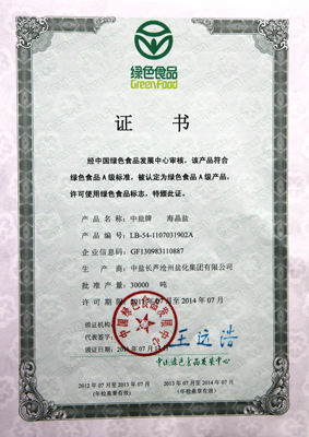 为申请绿色食品认证,公司从去年开始,投资2000多万元对食盐生产工艺和设备进行了技术改造,并努力加强食盐生产各环节的管理,按照天然、营养、优质的特定方式组织食盐生产,顺利通过了绿色食品鉴定机构的环境评价、产品检测,最终取得了中国绿色食品发展中心的认证,于7月份领取了绿色食品证书。