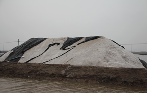 灾情发生后,公司领导第一时间赶赴受灾现场,组织全体干部职工进行抗灾自救。各制盐场不等不靠,斗志不减,抢排淡水,抢修塑苫。在不到一天的时间里,可修复的塑苫就初步抢修完毕,为6月8日和9日的雷雨天气做好了充分准备。虽然8日强对流天气没有降雨,但短时大风又使6日已受灾损伤的盐码苫封材料再次受创,一线干部职工又加紧抢修,保证了苫膜的度雨能力。