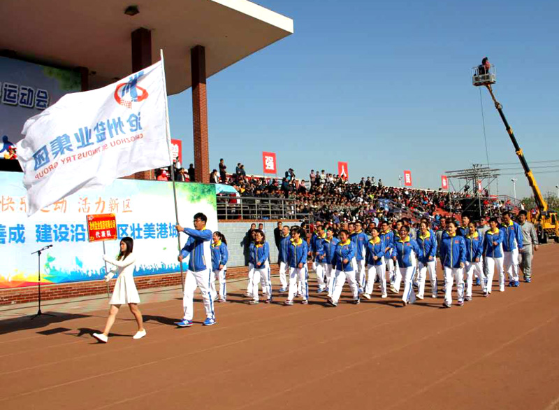 4月26日,渤海新区第四届全民运动会在北京交通大学海滨学院体育场隆重开幕。在激昂的运动员进行曲中,沧盐集团方队迈着矫健的步伐走进会场,展现了集团公司良好的精神面貌。