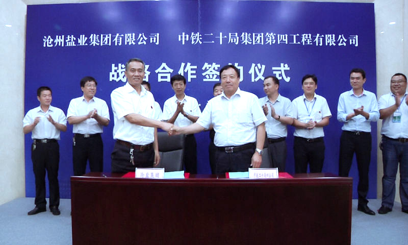 双方代表就合作方向和前景进行了深入交流和探讨。随后,沧盐集团党委书记、董事长刘建军同中铁二十局第四工程公司董事长秦浩贤代表合作双方签署了战略合作协议。