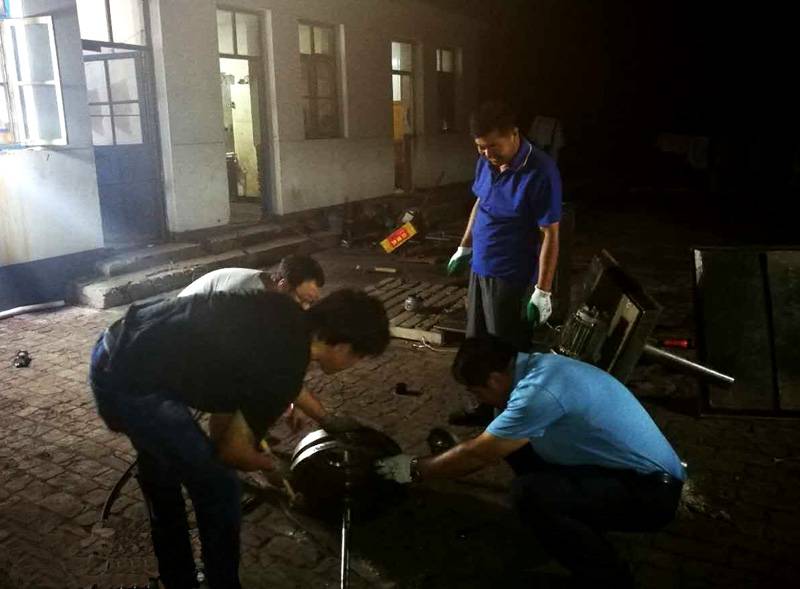 经过市场调研,2kg全自动包装设备市场价50-70万不等,设备费用高,安装周期长,根据现有情况根本不适宜。为此,品种盐公司领导班子决定对现有两台报废包装实施技术改造。8月25日,维修人员对两台报废的小包装机进行拆装打磨,对其中一台先行技改。由于原盐湿气大,流动性差,技改人员重新设计改装了投料口,保留了原来的空料震动电机,对损坏的部件维修更换,设备电路重新布设。经过不断调试,9月3日,第一台小包装机投入使用,现场生产效果比较理想,计量准确,包装能力得到大幅度提高,4人操作1小时生产2kg甩干盐一吨,比人工包装提高了两倍多,且大大降低了职工劳动强度。经检测,产品质量符合要求。通过试用,发现光电传感器由于湿盐粘连的原因经常不动作,转盘储料仓体积小,易发生量杯不满现象,针对这两处不足,维修人员调整技改思路,制定解决办法,对另一台废旧包装机在原改造基础上再进行技术改造。与此同时,为缓解生产压力,圆满完成销售任务,品种盐公司及时联系邯郸市盐业公司,购进两台淘汰包装设备。9日晚,包装机运达品种盐公司,品种盐公司领导班子当即决定立即连夜安装改造。为抢时间,赶进度,在盐业机械公司的协助下,品种盐公司仅用了4天时间,完成了购进的两台淘汰包装设备的改装。