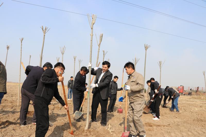 3月29日上午,党委副书记李蜻海带领干部职工130余人,乘车到黄骅新城种植区进行义务植树。植树现场,干部职工分工明确,搬运苗木、挥锨挖坑、扶苗培土、浇水养护,各环节衔接有序,配合默契。共种植白蜡、国槐、大龙柏、海棠、金叶榆等树木1500余棵,为黄骅新城增添了一片新绿。