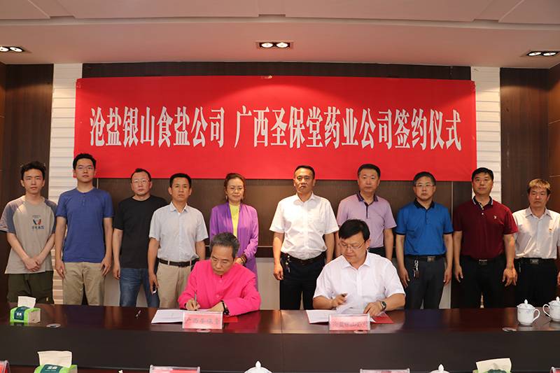 6月6日,沧盐集团银山食盐公司与广西圣保堂药业公司合作意向签约仪式在集团三楼会议室举行,银山食盐公司经理、法人代表高文生与广西圣保堂董事长黄爱强分别代表双方签署合作意向书。