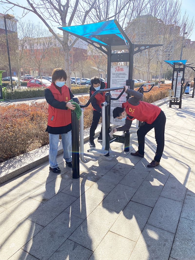 活动中,团员青年发扬不怕苦、不怕累的光荣传统,对广场的健身器械全面擦拭、对花坛、绿化带、人行道的垃圾、烟头全面清理,不放过一个死角。